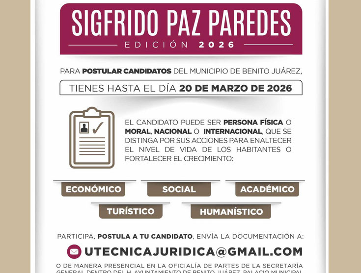 EMITE AYUNTAMIENTO CONVOCATORIA PARA MEDALLA AL MÉRITO CIUDADANO 2026