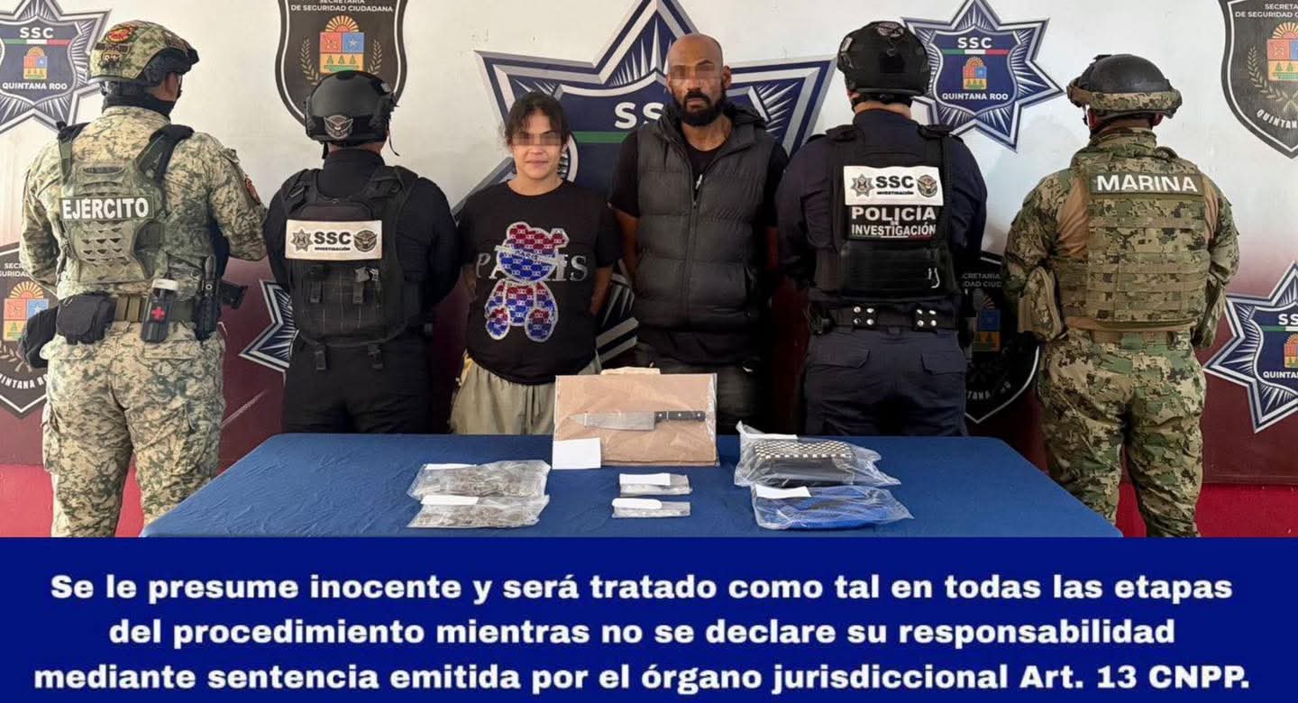 La acción se llevó a cabo en la Avenida Tulum, entre calle Flamboyán y calle Chaca, supermanzana 23, municipio de Benito Juárez, donde los agentes observaron a dos personas intercambiando bolsitas de plástico transparente con vegetal verde, con características similares a la marihuana.