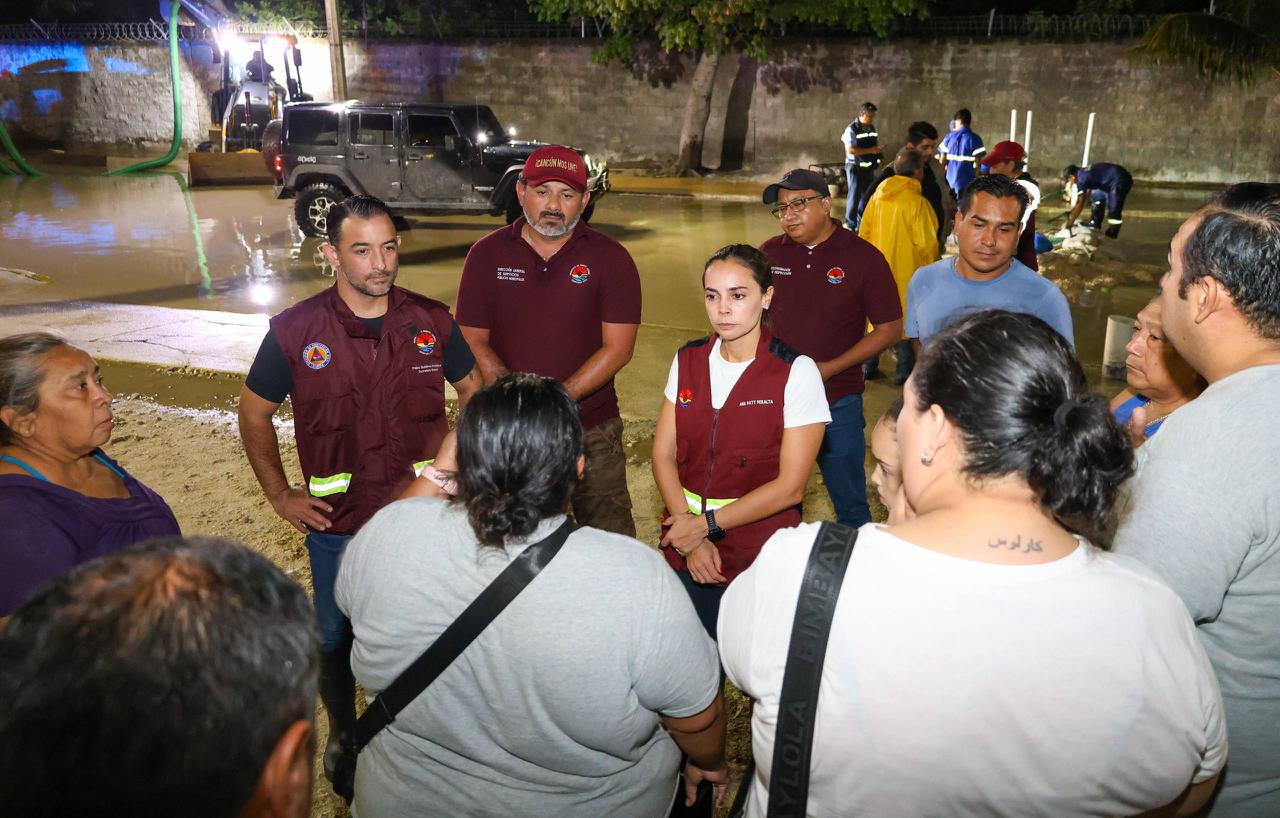 Durante su recorrido, la Primera Autoridad Municipal, acompañada de residentes de la zona, constataron las labores del Heroico Cuerpo de Bomberos, Dirección de Protección Civil y Dirección General de Servicios Públicos, quienes en coordinación con la empresa privada Aguakan, realizaron trabajos con bombas de achique y maniobras técnicas que permitieron arreglar la tubería de 6 pulgadas, que facilitó el desalojo del agua acumulada, atendiendo de manera efectiva las afectaciones en el área.