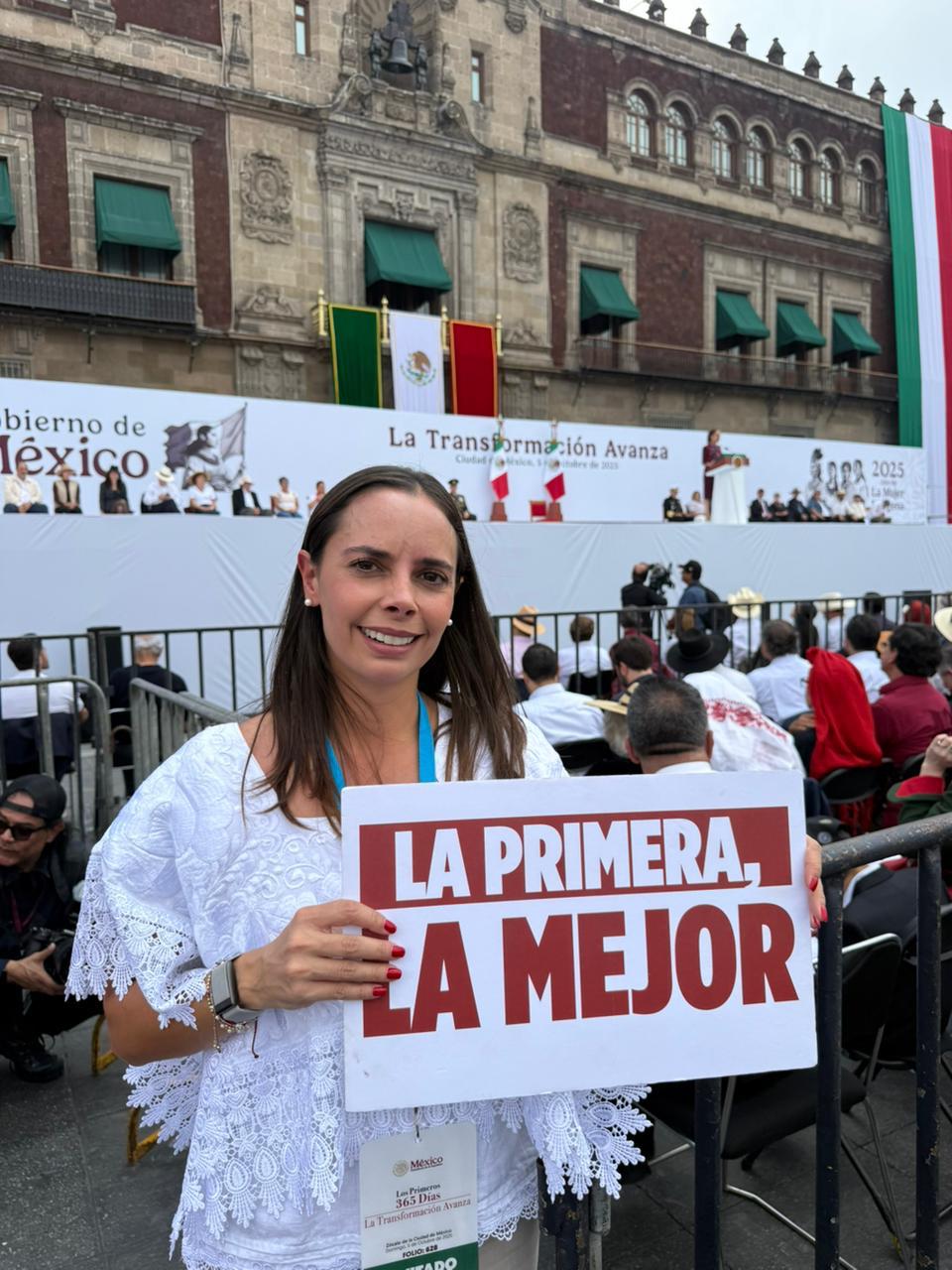 La Presidenta Municipal de Benito Juárez, Ana Paty Peralta, asistió al Primer Informe de Gobierno de la Presidenta de México, Claudia Sheinbaum Pardo, celebrado ante miles de ciudadanos en el Zócalo capitalino, donde refrendó su respaldo y total sintonía con el proyecto de transformación nacional que encabeza la mandataria federal.