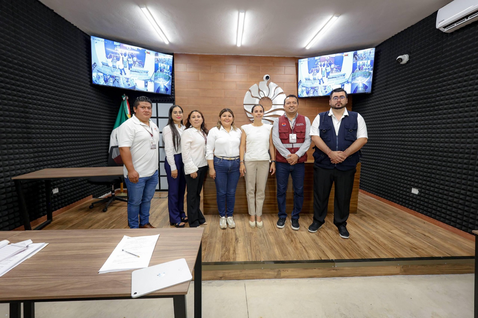 A fin de garantizar sus funciones una vez que entren en operación, la Presidenta Municipal, Ana Paty Peralta, recorrió la sala de juicios orales al interior del Centro de Retención y Sanciones Administrativas, en la Supermanzana 247, en el fraccionamiento Villas Otoch, en el que se instalan paneles de concentración de sonido para el audio y video que será grabado durante dichos procedimientos legales.
