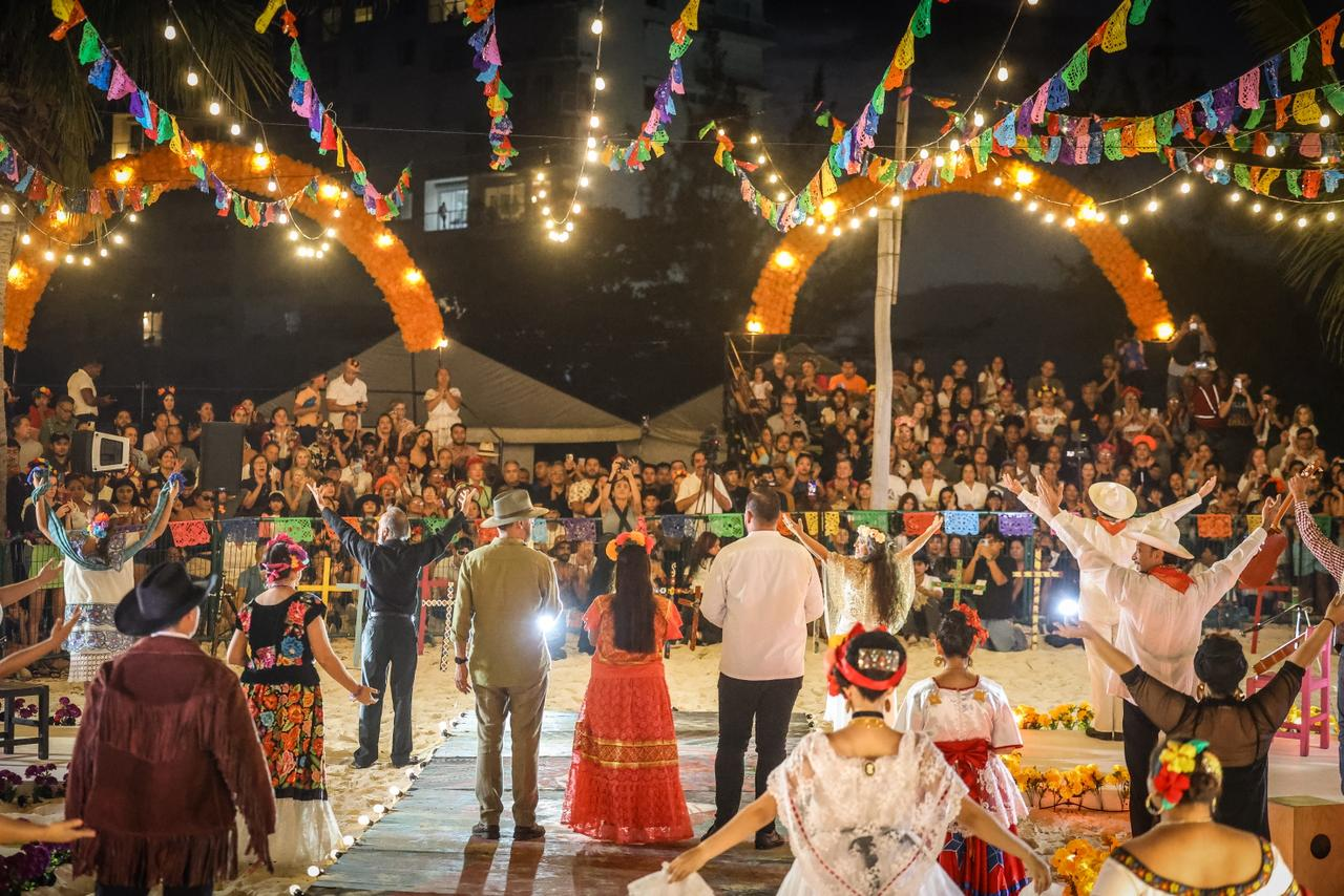 Esta actividad comenzó con la Procesión Marítima, un momento colorido en el que catrinas y catrines desembarcaron entre aplausos, el sonido del caracol y velas, evocando la conexión entre el mundo terrenal y el espiritual.