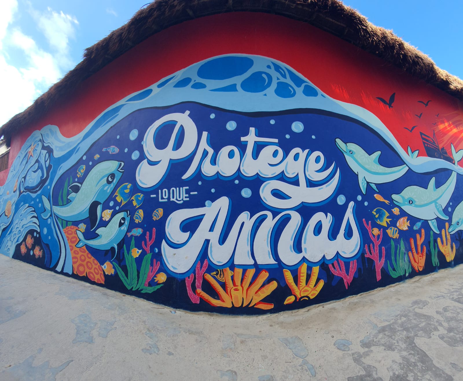 En una sencilla ceremonia en el pasillo de acceso público a playa "Lagarto", conocida como playa Forum, en la zona hotelera de Cancún, Rodrigo Constandse Córdova, director general de Delphinus y presidente del Festival de los Océanos del Caribe Mexicano, Daniel Rodriguez, director de Snorkeling 4 Trash y el artista plástico Miguel Castillo entregaron a la comunidad de Cancún el mural "Protege lo que amas".