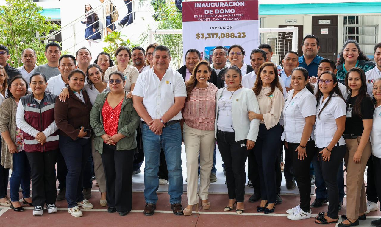 La Presidenta Municipal, Ana Paty Peralta, presenció la inauguración del domo del Colegio de Bachilleres Plantel Cancún Cuatro, encabezada por la gobernadora Mara Lezama, lo que destacó que refleja su compromiso por invertir en la educación y un mejor futuro para las nuevas generaciones.