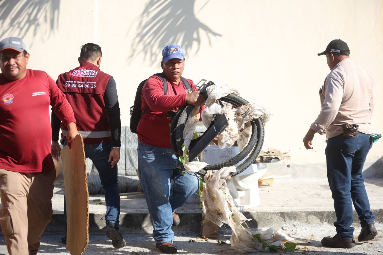 Como parte de la brigada de servicios públicos, Ana Paty Peralta además supervisó la jornada de descacharrización realizada en las calles de la Sm. 103, abandonado a la erradicación de criaderos de mosquitos en prevención al riesgo de enfermedades transmitidas por vector. Agregó que desde febrero, con el arranque del programa estatal “Transformemos juntos la salud de Quintana Roo, eliminemos los criaderos de moscos”, en Benito Juárez se han retirado más de 238 toneladas de cacharros en 40 Supermanzanas diferentes.