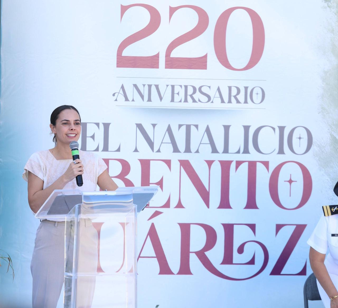 La Presidenta Municipal, Ana Paty Peralta, encabezó la conmemoración del 220 Aniversario del natalicio de Don Benito Juárez García, en la que reconoció el trabajo que realizó por su pueblo.