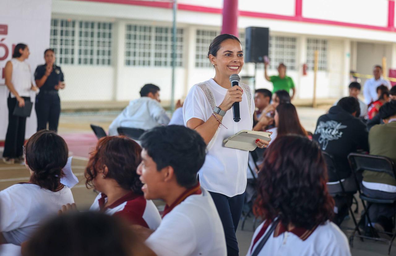 “Quiero pedirles que sigan siendo jóvenes rebeldes, jóvenes que rompan las reglas, pero que las reglas sean las que los lleven a hacer el bien; ser rebeldes es decidir no drogarse, no humillar, no violentar, porque las actitudes autodestructivas no los va a llevar a nada bueno”, expresó durante el foro organizado por la Secretaría Municipal de Seguridad Ciudadana y Tránsito, a través de la Dirección de Prevención del Delito con la Participación Ciudadana, que se realizó en el domo del Centro de Bachillerato Tecnológico Industrial y de Servicios (CBTIS) 272 “Sor Juana Inés de la Cruz.