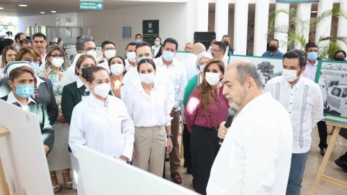 Cancún, Q.R., a 21 de febrero de 2023.- La Presidenta Municipal de Benito Juárez, Ana Patricia Peralta, acompañó a la gobernadora Mara Lezama y al director general del IMSS, Zoé Robledo Aburto, a la Exposición IMSS: 80 fotografías, 80 historias, que se realizó en el Hospital General Regional No. 17, con el propósito de reconocer la labor médica en salvaguardar vidas.