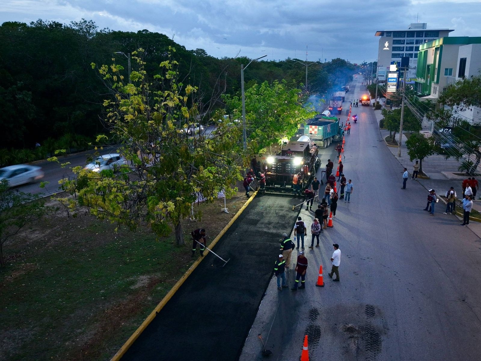 “Estaremos reconstruyendo en promedio un kilómetro por carril diario. Estas son parte de las obras de los gobiernos de la Cuarta Transformación. Llevaban muchos años que la avenida Kabah no tenía una repavimentación”, expresó.