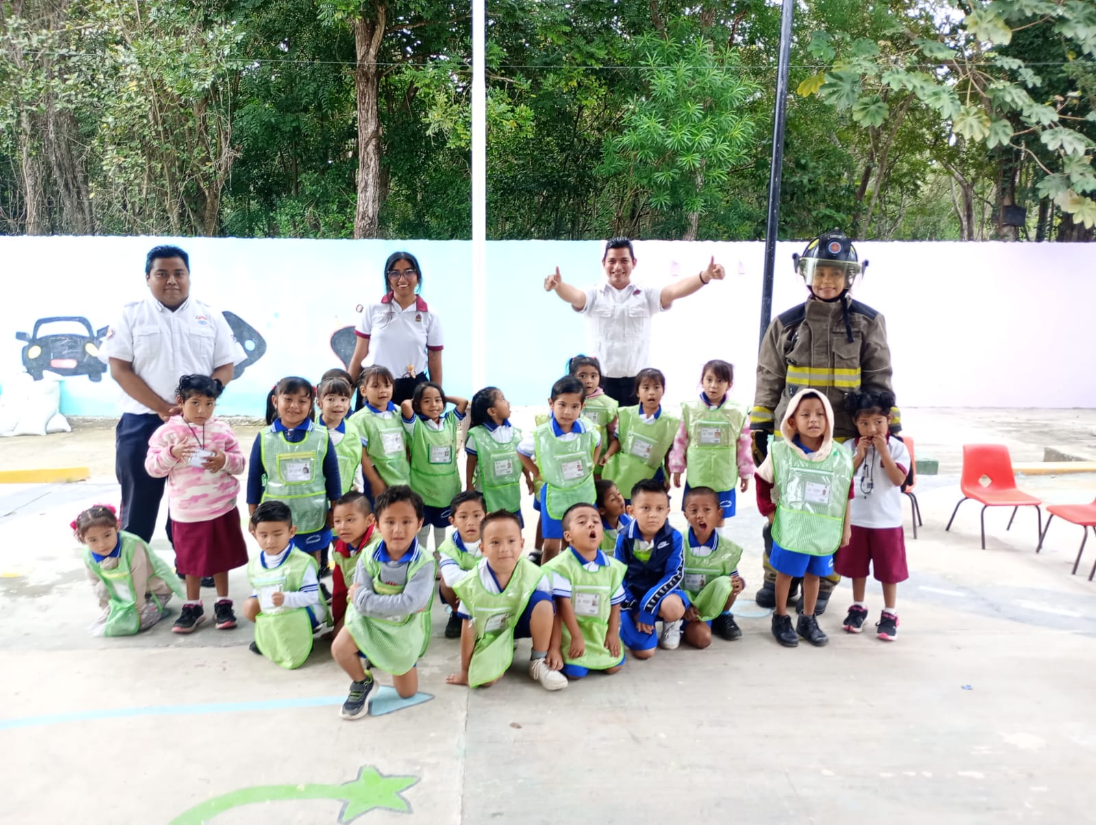 Alumnos del jardín de niños “20 de Noviembre” participaron en la plática “Mis Primeros Pasos en la Prevención”, otorgada por el Heroico Cuerpo de Bomberos de Cancún, como parte de las acciones preventivas que mantiene el gobierno municipal para el bienestar de la ciudadanía.