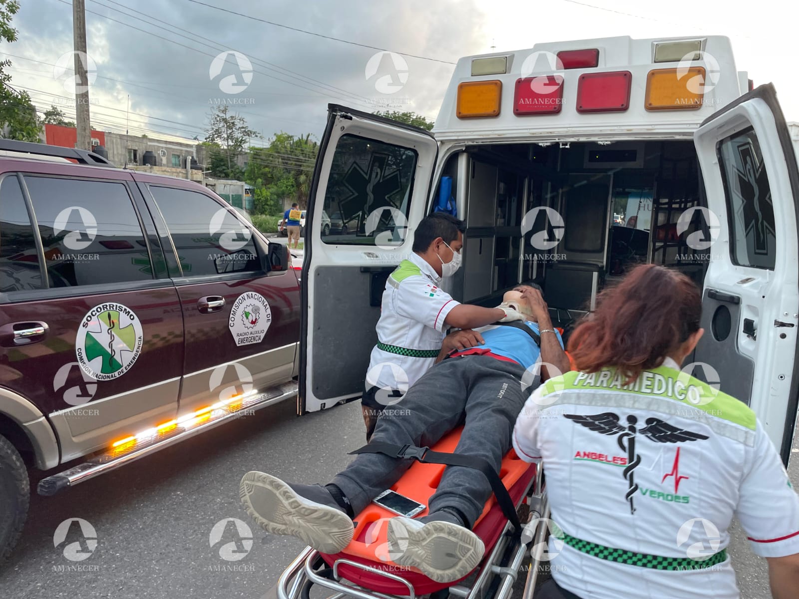Posteriormente, se dio aviso al 911 y paramédicos de una empresa privada lo trasladaron al Hospital General. Elementos de la Marina acudieron al lugar para apoyar en las labores de atención y traslado del herido.