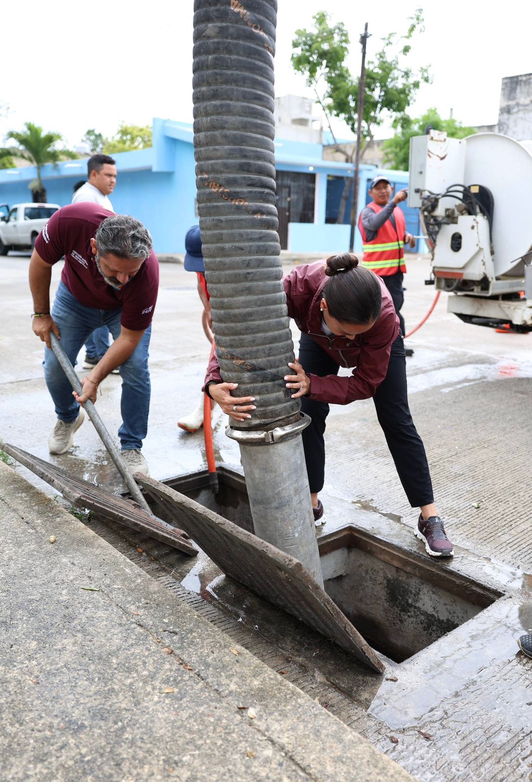 Con el equipo de Servicios Públicos y su titular, Antonio de la Torre Chambé, supervisó el uso de la máquina Vactor en el cruce de la Calle 80 y 75 Norte, que se encargó de retirar el lodo acumulado en los captadores, así como la limpieza de pavimento que es la recolección de residuos sólidos y basura vegetal alrededor de las alcantarillas, a efecto de que no se tapen en caso de la precipitación pluvial.