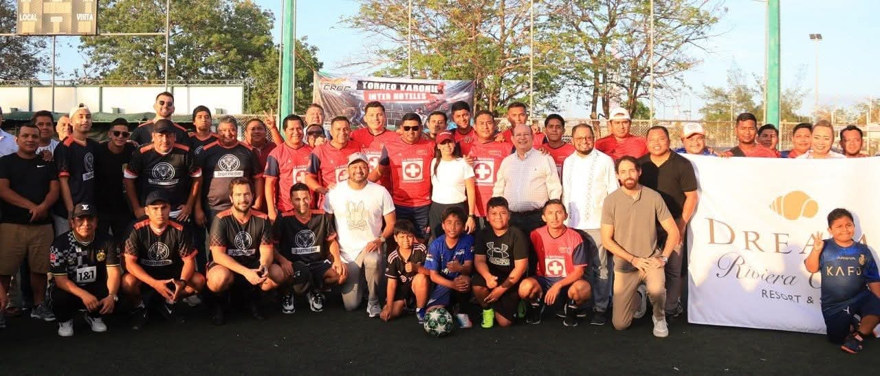 Después de los honores a la bandera y las palabras del presídium, las autoridades realizaron el tiro penal que dio paso a la gran final entre Dreams Riviera vs Secrets Playa Mujeres, y al partido por el tercer lugar que disputaron La Máquina vs D'Cave.