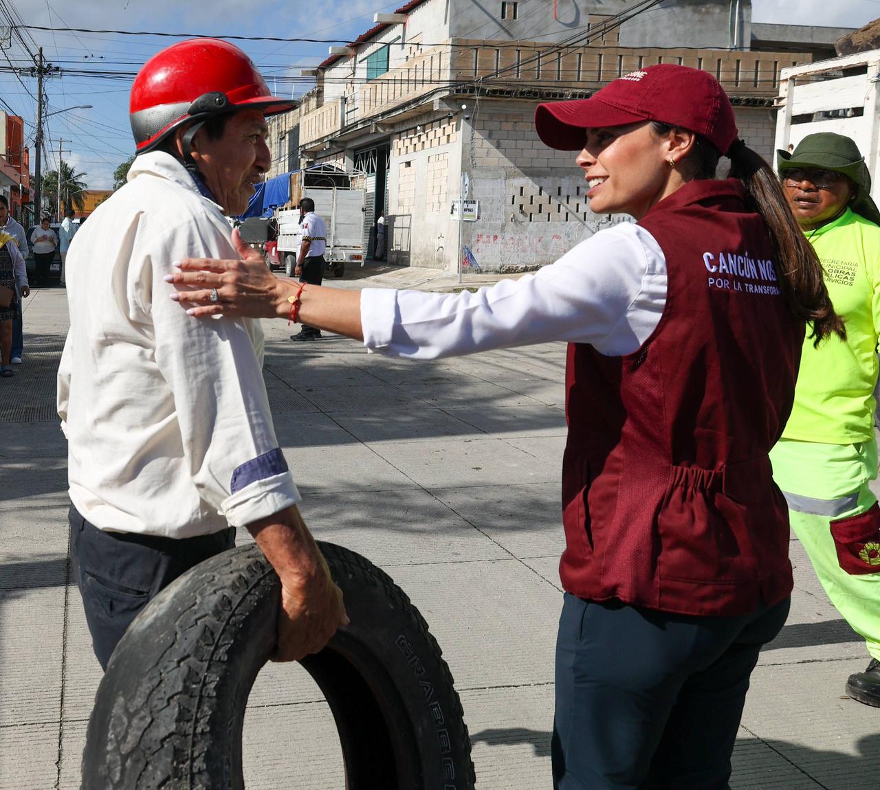 Al acudir a la Supermanzana 230, la Primera Autoridad Municipal escuchó y atendió también algunas peticiones de los vecinos para mejorar su entorno habitacional, quienes agradecieron el paso de los camiones recolectores de cacharros para evitar la creación de criaderos de moscos y vectores que transmiten diferentes enfermedades.
