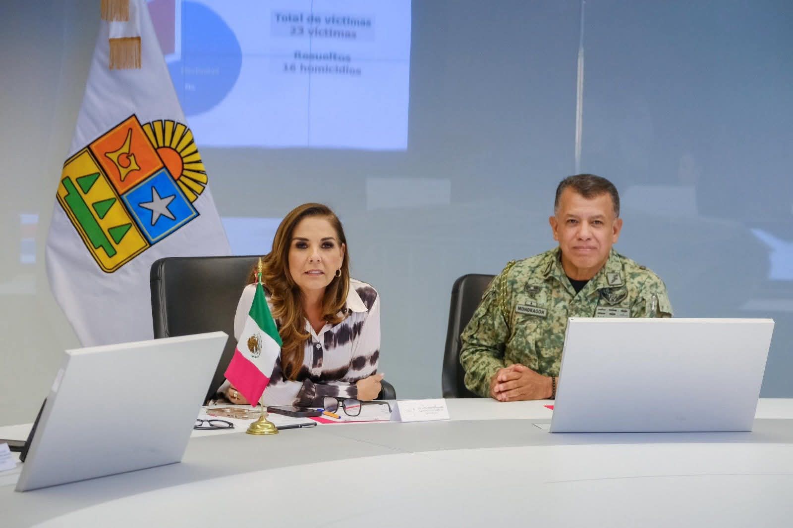 La gobernadora de Quintana Roo, Mara Lezama Espinosa, encabezó la Mesa de Seguridad estatal, donde autoridades de los tres órdenes de gobierno revisaron las acciones y estrategias que se implementan para fortalecer la paz y la tranquilidad en la entidad.
