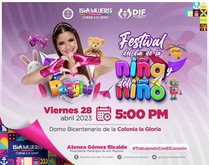 Con motivo del Día del Niño, Atenea Gómez Ricalde, presidenta municipal de Isla Mujeres, festejará a los menores on la actuación de Tatiana y Patyñu, en un festival que está organizándose con mucha dedicación para que los niños y niñas, tanto de la Zona Continental como de la insular, se diviertan al máximo, además de otras grandes sorpresas que se tienen preparadas.