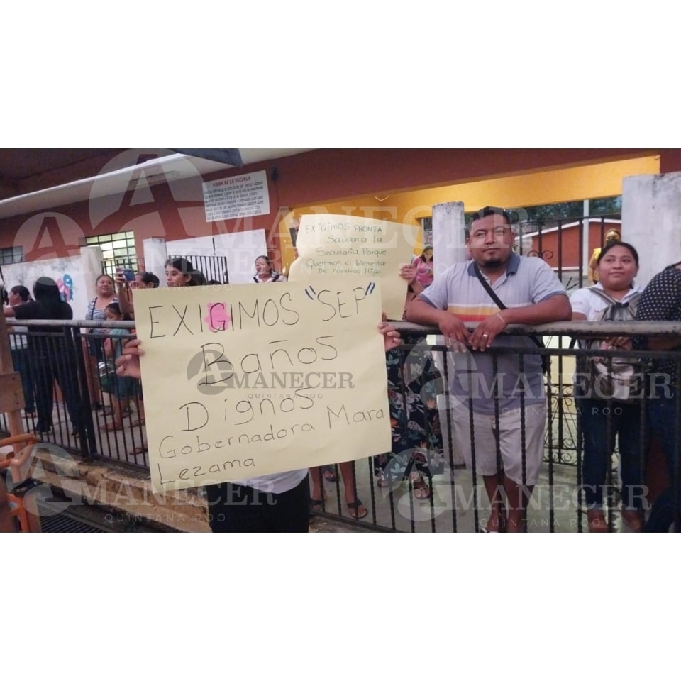 Kantunilkín.-Cansados de la esperar una respuesta por parte de las autoridades educativas del Estado, padres de familia de la escuela primaria “Gabino Barreda” tomaron las instalaciones del plantel educativo, suspendiendo las clases, por tiempo indefinido, hasta que se construyen nuevos baños ya que los actuales tienen más de 70 años ocasionando que las fosas sépticas colapsen.