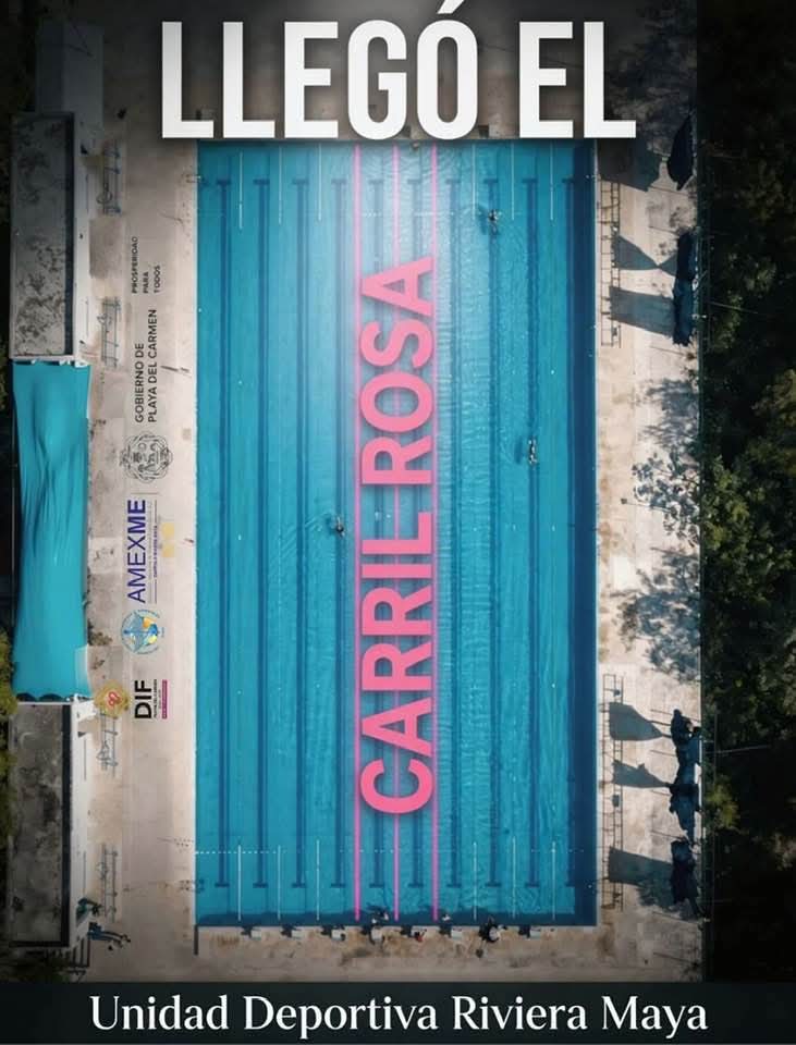 La presidenta municipal Estefanía Mercado anunció el programa “Carril Rosa”, en la alberca olímpica de la Undiad Deportiva Riviera Maya, como parte de una iniciativa interinstitucional orientada a brindar atención especializada a mujeres que enfrentan problemas de salud derivados del linfedema, con prioridad para aquellas en situación de vulnerabilidad.