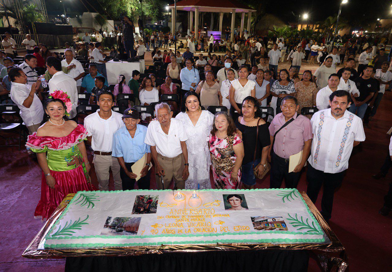 En el marco de la XXV Sesión Extraordinaria de Cabildo Itinerante, realizada en el parque principal de la delegación Leona Vicario, el Ayuntamiento de Puerto Morelos conmemoró el 90 aniversario del cambio de nominación de la antigua Hacienda Santa María, hecho histórico que dio identidad y reconocimiento a esta comunidad.