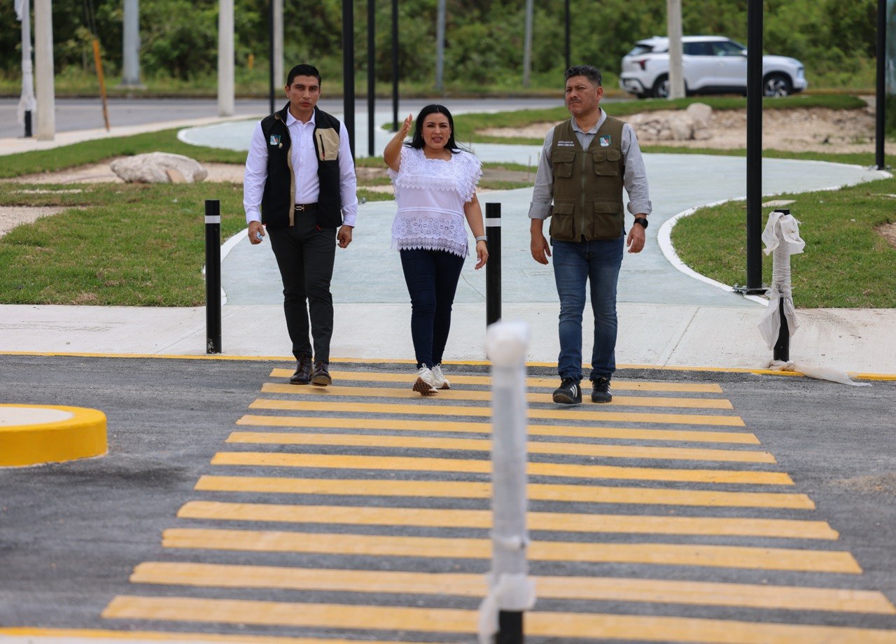 Durante la visita al área ubicada detrás de la plaza conocida como “Super Aki”, entre la Carretera Federal 307 y la avenida Joaquín Zetina Gasca, la primera autoridad municipal subrayó la importancia de esta obra —que se encuentra prácticamente lista para su inauguración— como parte del impulso a un desarrollo urbano ordenado, incluyente y orientado al bienestar social.