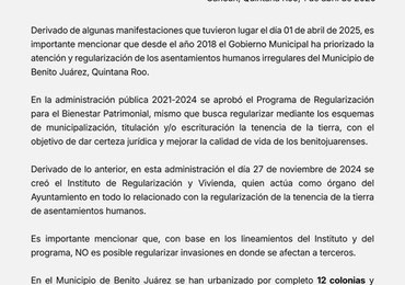 AYUNTAMIENTO DE BENITO JUÁREZ IMPULSA LA REGULARIZACIÓN CON ORDEN Y CERTEZA JURÍDICA